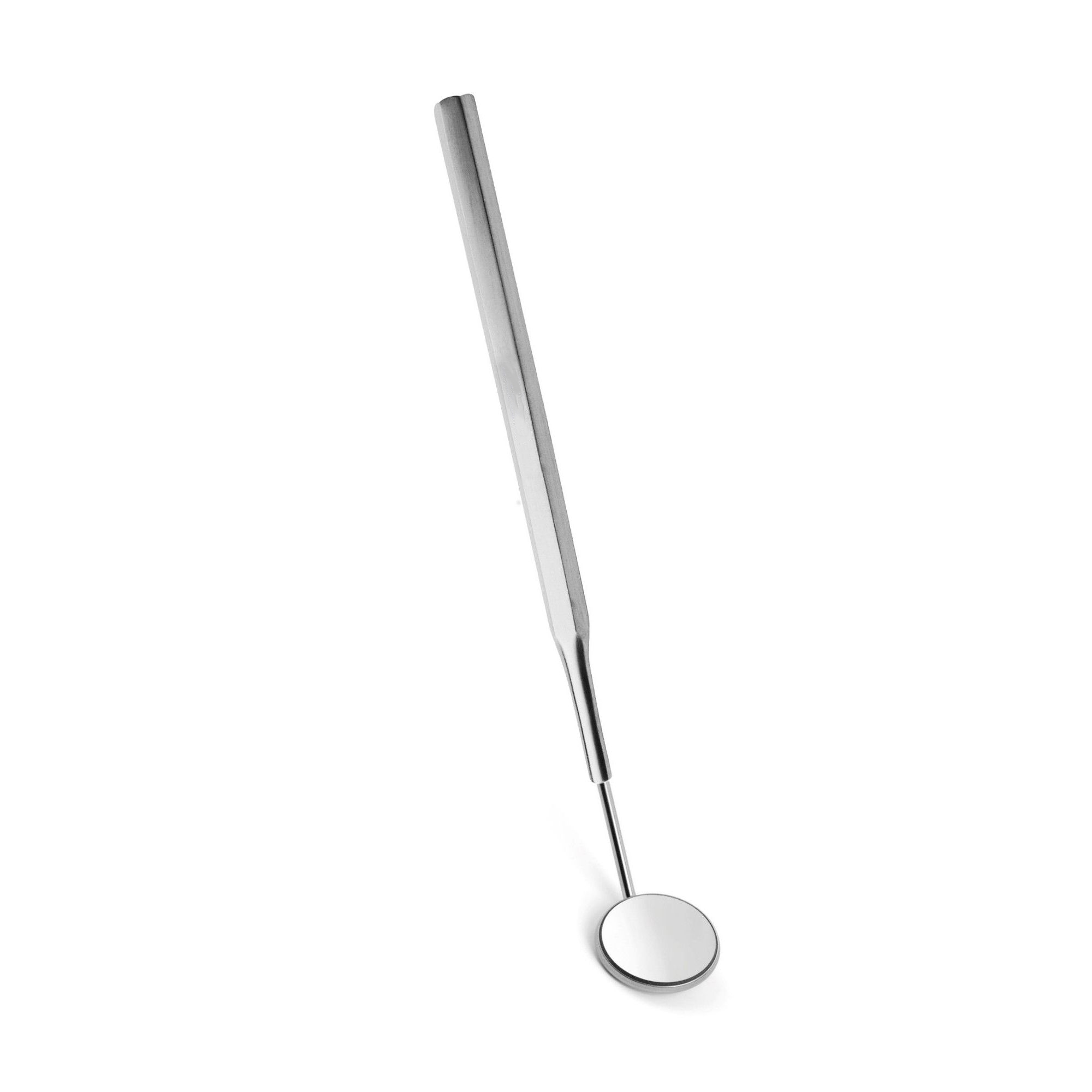 For the inspection the oral cavity, to view a mirror image of the teeth in locations of the mouth where visibility is difficult or impossible. They also are used for reflecting light onto desired surfaces, indirect vision, and with retraction of soft tissues to improve access or vision. Reflection layer is at the glass-underside and the image is reflected from below the glass-surface. More durable as they are coated on the back surface, protected by the glass. Regular mirrors reflect light from the top of the glass as well as from the silver layer. This could cause a double image. Simple stem mirror heads have a shank that is straight.