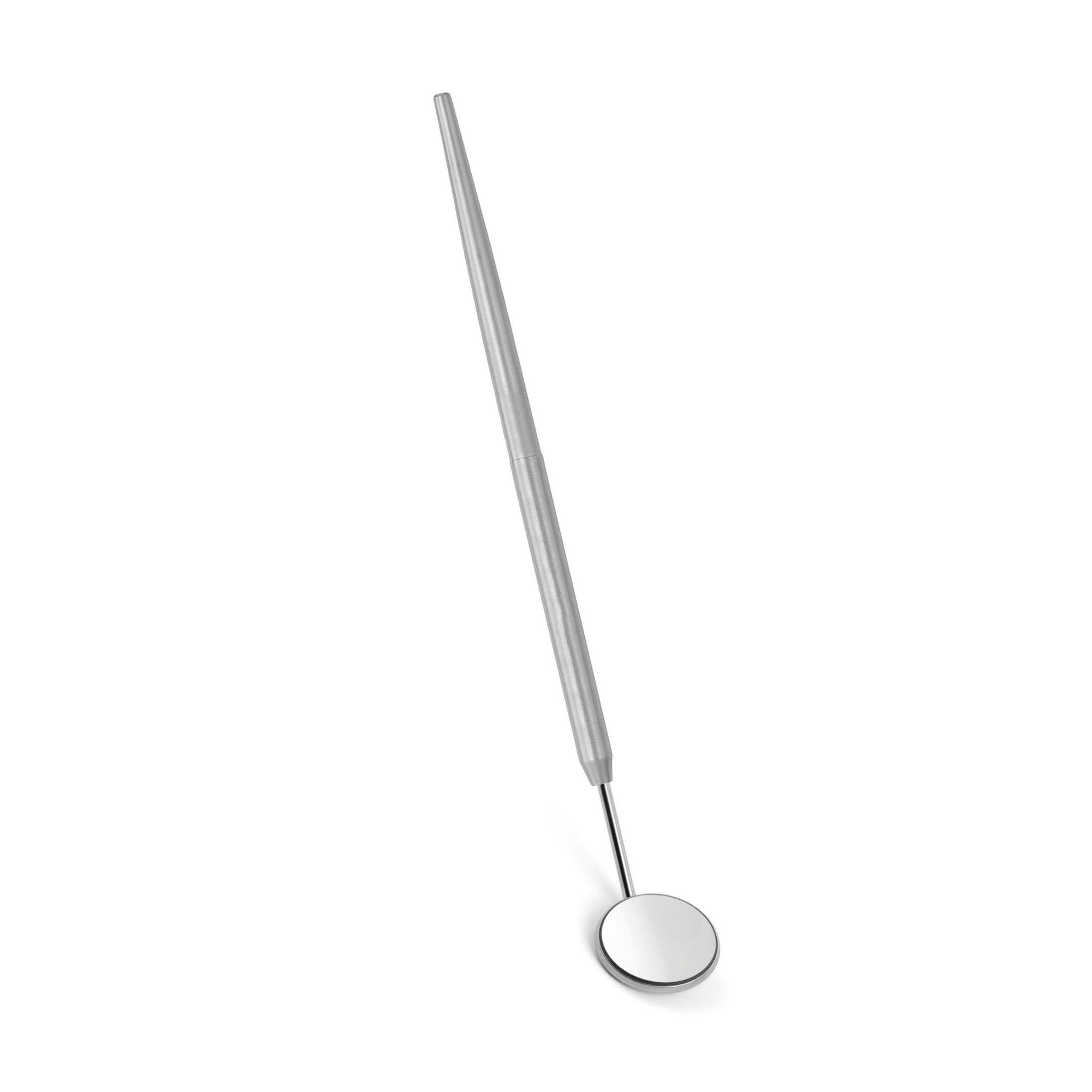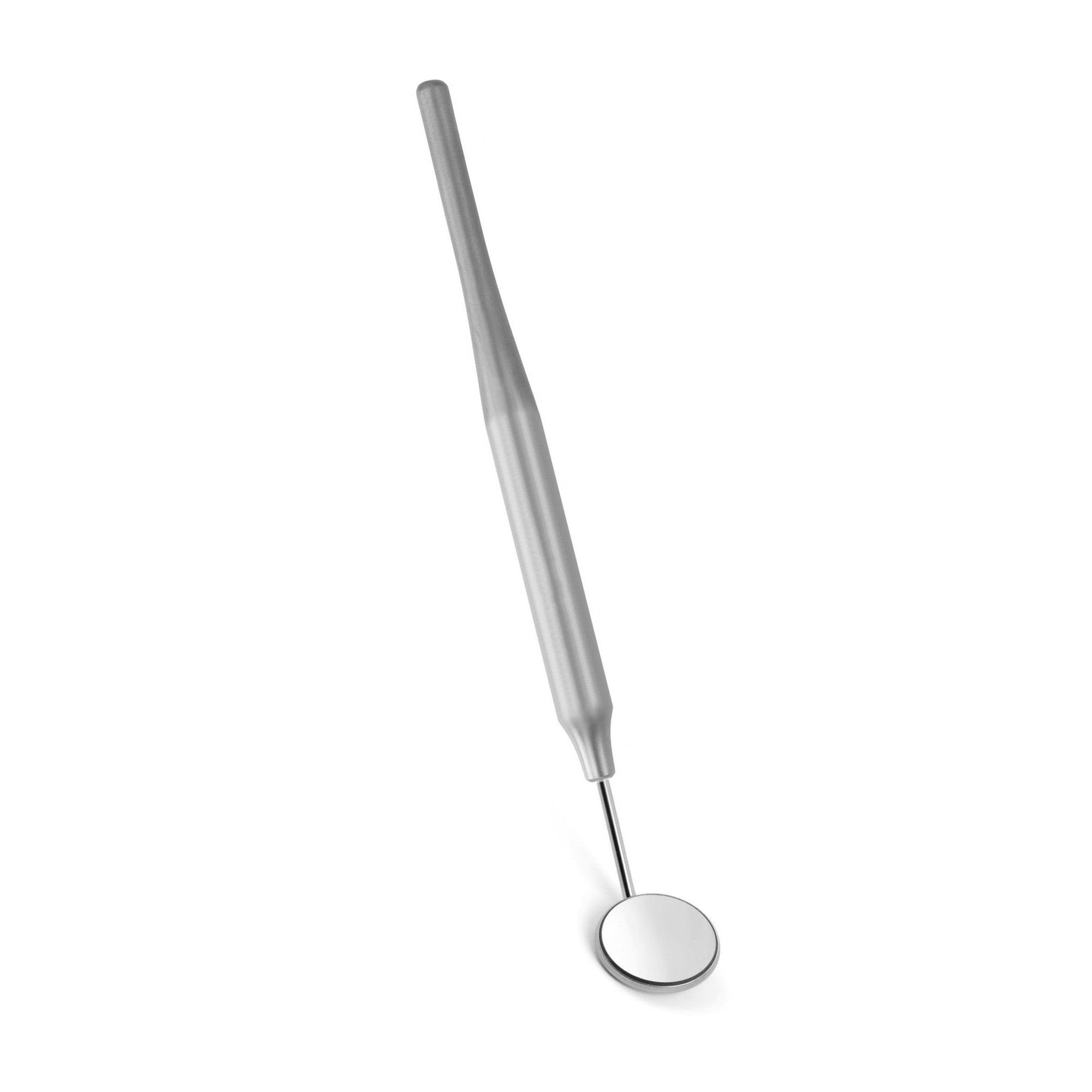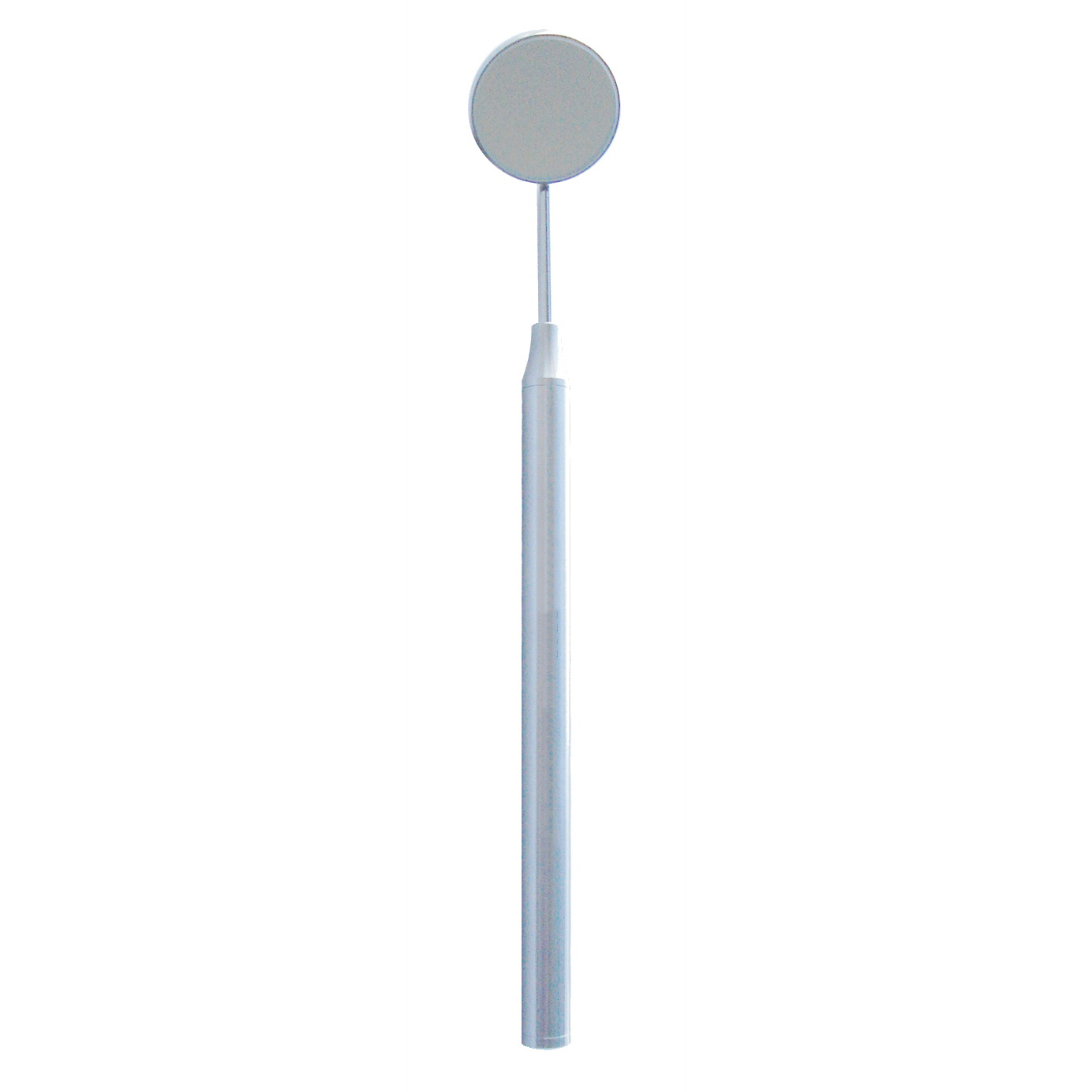For the inspection the oral cavity, to view a mirror image of the teeth in locations of the mouth where visibility is difficult or impossible. They also are used for reflecting light onto desired surfaces, indirect vision, and with retraction of soft tissues to improve access or vision. Reflection layer is at the glass-underside and the image is reflected from below the glass-surface. More durable as they are coated on the back surface, protected by the glass. Regular mirrors reflect light from the top of the glass as well as from the silver layer. This could cause a double image. Simple stem mirror heads have a shank that is straight.