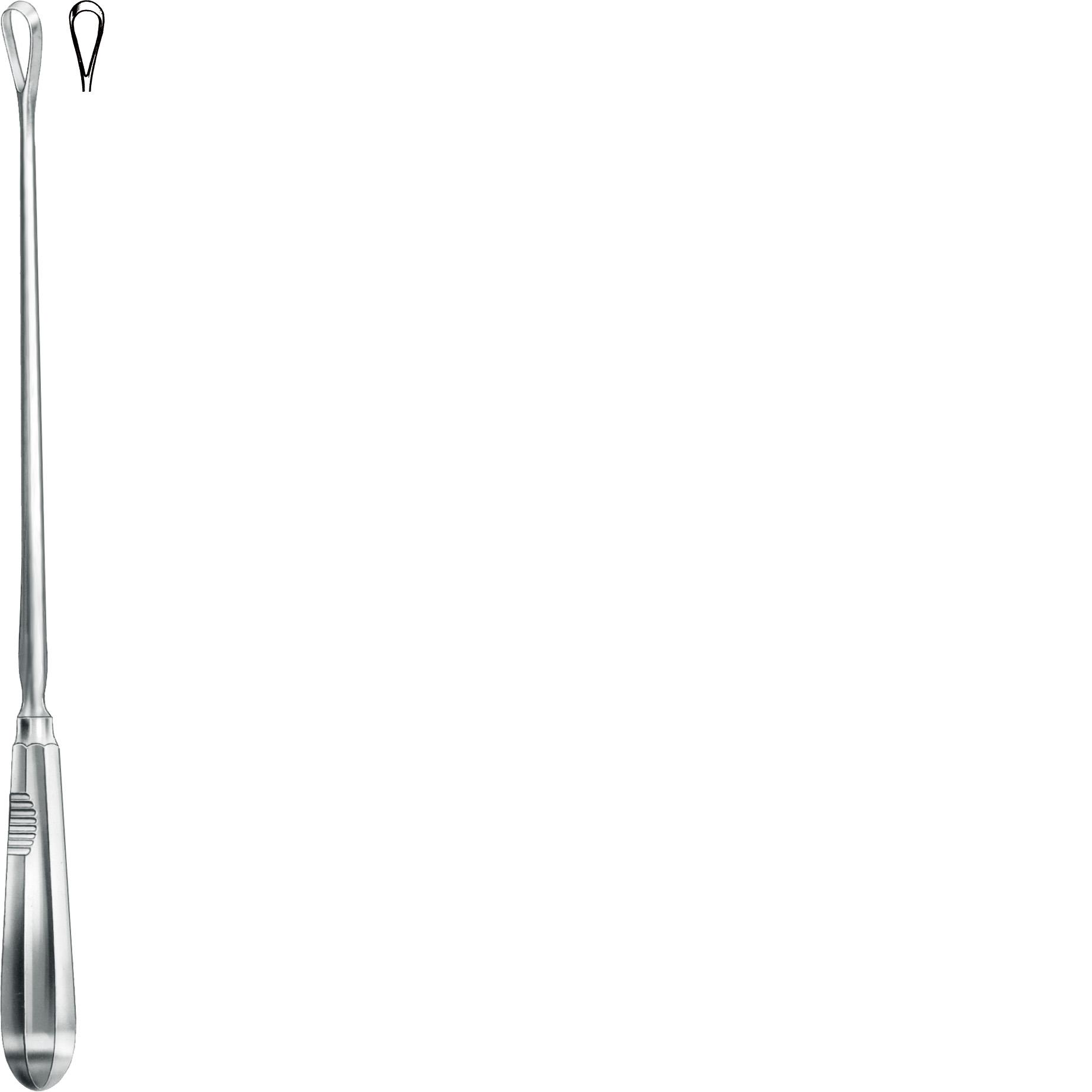 Uterine curette, acc. to Recamier, 5 mm, sharp, rigid, fig. 00, 30 cm